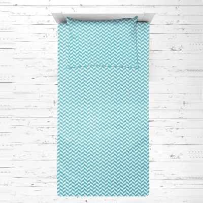 Bacati – Herringbone Aqua Muslin 3 Pc Toddler Bed Sheet Set 100 Pecent Cotton