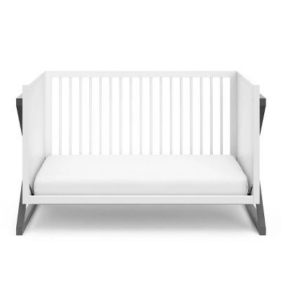 The Storkcraft Equinox 3-in-1 Convertible Crib is a stunning addition to the modern nursery. With its clean lines, two-tone finish, and signature “X” design, the Equinox is an eye-catching baby crib that add a designer look to any nursery. Designed to adapt to your growing baby, the Storkcraft Equinox Convertible Crib is equipped with a 3-position adjustable mattress support base, and can convert from a crib into a daybed and toddler bed (compatible Graco Universal Toddler Safety Guardrail (Dowels) sold separately).